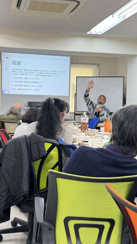 株式会社アイ・ティー・オー 伊藤照夫さんからは農の多面的機能とwellbeingな貴重なお話を伺いました。自然栽培は生物多様性を育み、里山の落葉樹林が良質な堆肥を供給。水田の保水機能は洪水被害を軽減し、美しい田園景観は日本の伝統文化として観光資源にもなっており、また農作業そのものが、体力維持や免疫力向上につながる「アグリ・エクササイズ」に。日光を浴びることでビタミンDが活性化し、ストレス解消の癒し効果も。協働作業を通じた地域連携の醸成、環境保全や防災意識の向上など、農業を通してwellbeingな生活を実現する具体的な実践についてお話しいただきました。